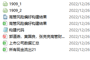 本附件包括:1909_1.png、1909_2.png、1916_3.png、高管风险偏好构建结果.dta、高管风险偏好构建结果.xlsx、构建代码.do、郭道燕,黄国良,张亮亮高管财务经历、风险偏好与公司超速增长.pdf、上市公司数据汇总.xlsx