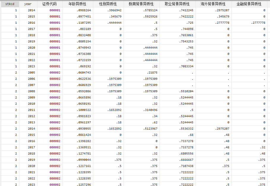 A股公司高管团队异质性数据(2005 - 2023)包含原始数据、do代码处理过程、计算结果,文献参考“高层管理团队异质性对企业绩效的影响研究 以股权集中度为调节变量”。
