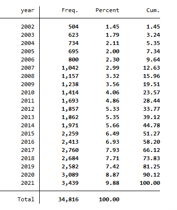 五、数据结果展示[td]code代码 | year | 管理者过度自信——盈利预测偏差 |