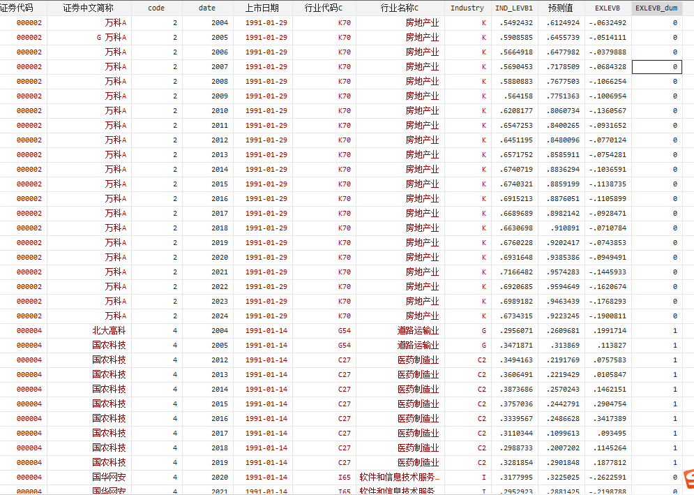 | 行业负债率的中位数(IND_LEVB) | 行业负债率的中位数 |