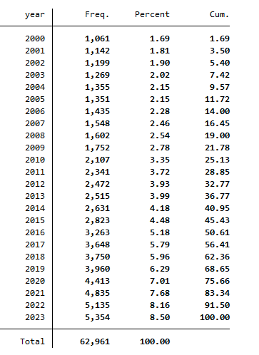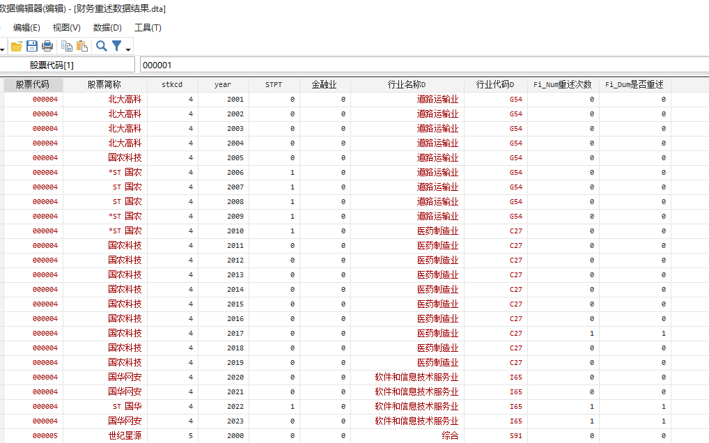 上市公司财务重述数据(2000 - 2023):会计差错与重述年度次数样本量