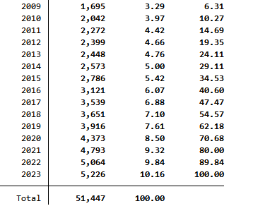 A股上市公司僵尸企业识别数据(2009 - 2023年)及相关处理识别条件扣除各类补贴后实际利润总额连续若干年之和为负,本文选取T = 2(即连续三年)作为基准识别结果。