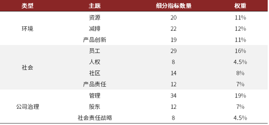 - 三项十大类共包含178项指标,其中环境类合计61项,社会类合计63项,治理类合计54项。