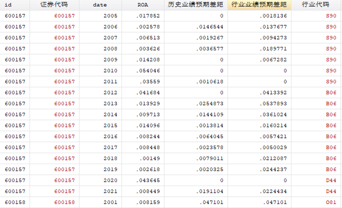 A股上市公司历史业绩与行业预期差距数据及DO代码(2001-2021)