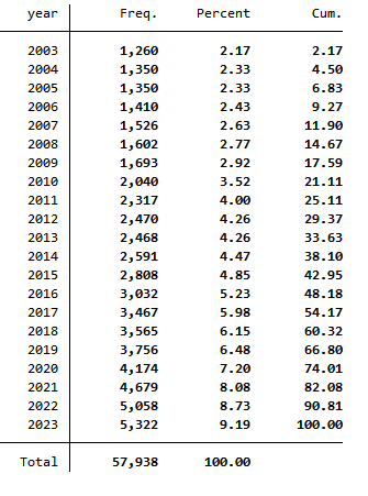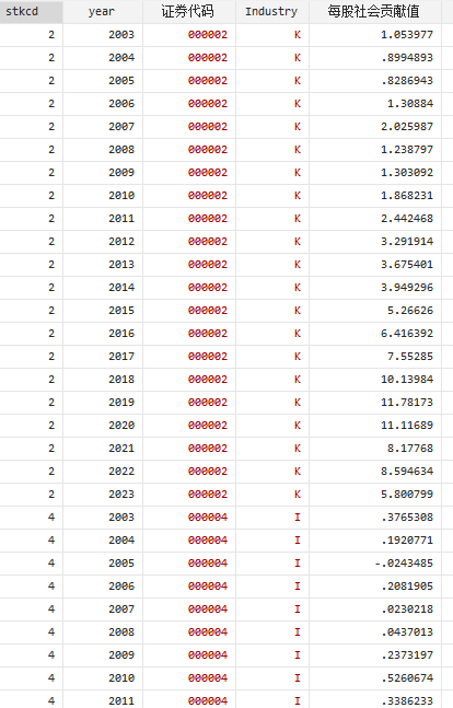 [经管数据集] A股上市公司每股社会贡献值(2003-2023)含原始数据与Stata代码 |