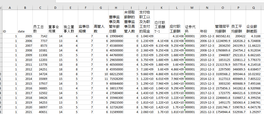 2006 - 2021年含计算过程的上市企业内部薪酬差距数据数据文件:内部薪酬差距原始数据+过程+结果.xlsx(8.01 MB)