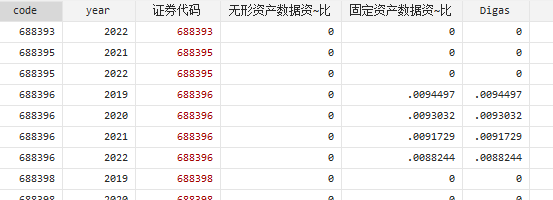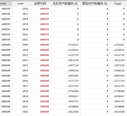 李健方法:2007 - 2022年A股上市公司企业数据资产Digas指标数据文本计算方式:基于数据资产形成机制,依据数据资产形成阶段,结合企业财务报表附注中披露的年末固定资产、无形资产明细里与数据资产化过程相关的项目占固定资产、无形资产的比例,来测度企业数据资产。具体来说,当企业披露的固定资产、无形资产支出明细中出现特定关键词(如图1所示)时,初步判定为企业数据资产化过程。接着,将该企业同一年度与数据资产化过程相关的固定资产、无形资产求和,并计算其占固定资产和无形资产总额的比例,以此作为企业数据资产的代理变量(Digas)。企业数据资产的形成涵盖数据收集、数据存储、数据分析以及数据应用四个阶段。
