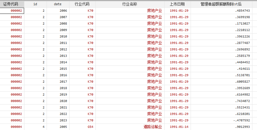 2005-2023年沪深京A股管理者超额薪酬面板数据及Stata处理过程