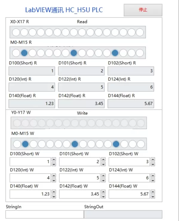 字符串处理方面,H5U使用双字节表示字符串长度,这一点与其他PLC有所不同。例如将"Hello"写入D100寄存器时,前两个字节需标明长度值5: