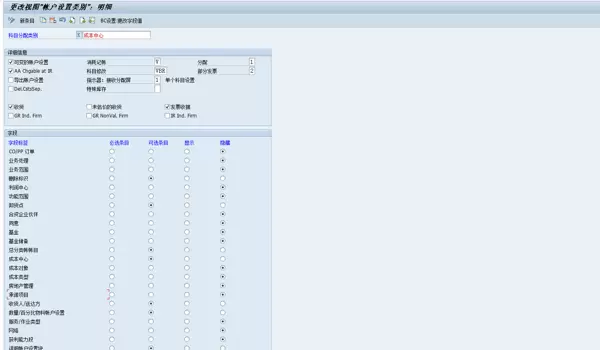 不同科目分配类别会影响页签中可维护的字段内容,系统可根据配置动态调整显示项。
