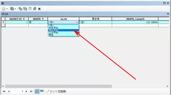 - 进入该要素类的属性表后,即可看到字段值已被限制为预设的可选列表。