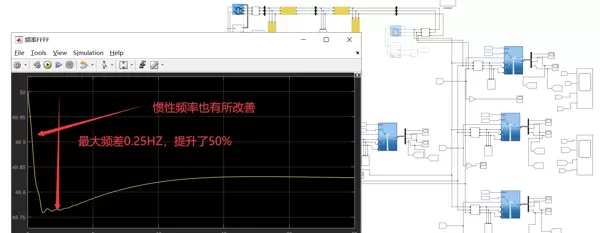 仿真结果表明,在高比例风电接入背景下,该策略使系统频率最低点由49.2Hz提升至49.8Hz,改善幅度达50%,显著增强了电网对频率波动的抵御能力。