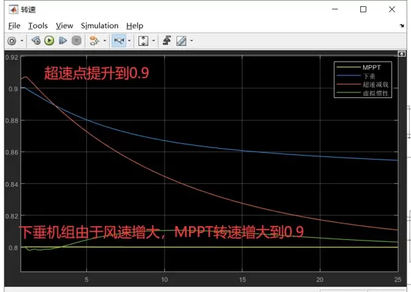- 超速减载控制:在风速条件允许时,将部分机组运行点从最大功率追踪曲线转移至预留备用功率区,提前准备可调度容量;