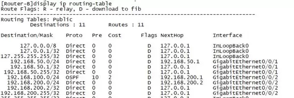 (2)检查Router-B的路由表条目(截图);