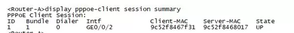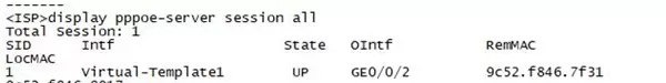 (1)查看PPPoE服务器端的会话状态及相关配置(截图);