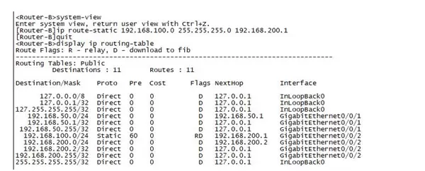 | 4 | Router-B g0/0/2 | 192.168.200.2 | 通 |