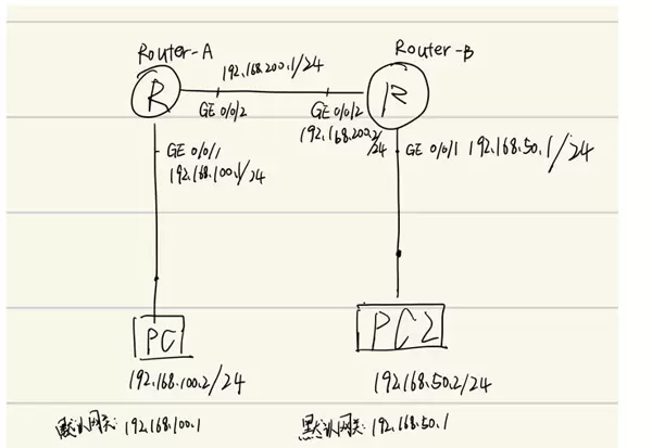 | 3 | Router-B G0/0/1 | 192.168.50.1 | 通 |