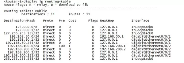 (2)同样方式查看Router-B的路由表内容(截图);