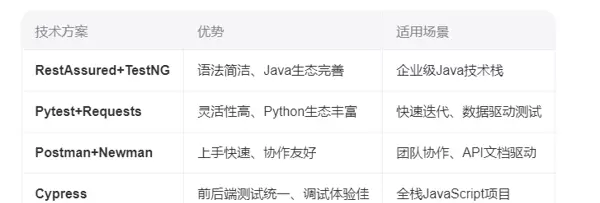根据团队技能栈、项目规模和集成需求,综合评估Postman+Newman、Pytest+Requests、RestAssured、Karate等方案的适用性,选择最匹配的技术组合。