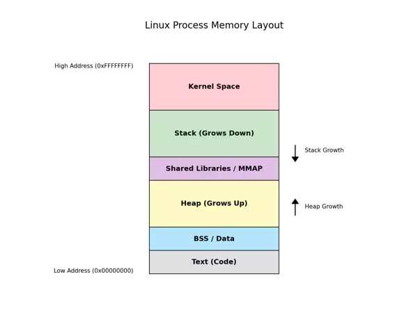 理解堆栈溢出的核心在于掌握 Linux 进程的内存分布以及函数调用过程中栈的操作方式。只有清楚程序在运行时如何管理内存,才能深入分析漏洞成因。