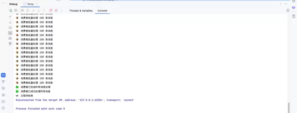 System.out.println("? 所有生产者任务完成,共生成 " + producedCount.get() + " 条消息");
