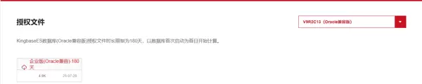首先访问金仓社区官网,获取V9R2C13版本的Oracle兼容数据库安装包。同时,请注意一并下载对应的授权文件,具体操作方式如下图所示: