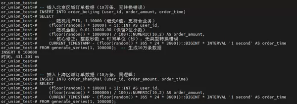 向两张表中分别导入大规模真实场景模拟数据,形成总量达20万条的测试数据集,用于后续查询性能对比分析。