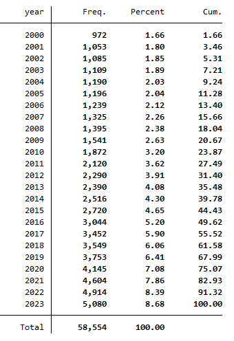 2000 - 2023年含未吸收、已吸收冗余的组织冗余与冗余资源数据及stata代码- 未吸收的冗余(UnAbSlack):本文采用企业速动比例扣除该指标行业中值来度量,以此估计相对于行业水平企业持有的过剩未吸收冗余。未吸收冗余体现了企业短期内闲置或未充分利用的资源,该指标数值越高,表明企业可用于支持创新的短期自由资源越丰富。