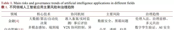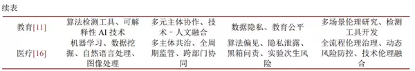 当前人工智能算法面临的主要伦理风险包括:算法黑箱导致的可解释性缺失;算法偏见引发的公平性问题;数据滥用带来的隐私侵犯;以及责任归属不清造成的问责困境。不同领域的人工智能应用在风险类型与治理趋势上呈现出差异化特征(见表1)。