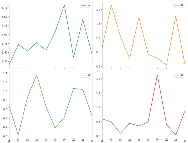 df.plot(subplots=True, layout=(2, 2), figsize=(10, 8)) plt.tight_layout() plt.show()