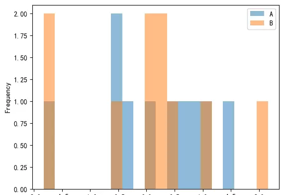 df.plot.hist() - 比较不同类别的数据 —— 推荐使用柱状图或分组箱线图。