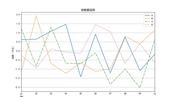 折线图是 Pandas 中最常用的图表之一,尤其适合展现随时间变化的趋势。