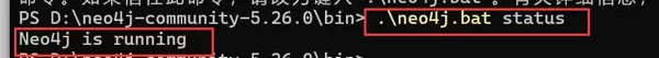 若返回结果为 “Neo4j is running”,则说明服务已成功启动。