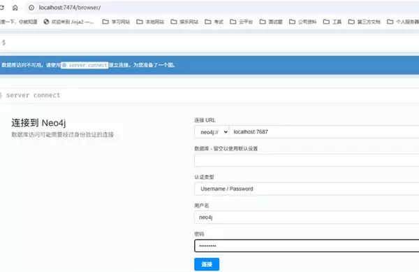 首次登录时会进入 Neo4j Browser 登录页面,默认用户名和密码均为:
