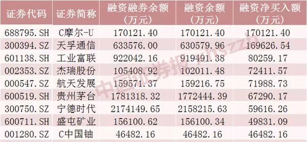 值得注意的是,C摩尔-U在上市首日即获融资净买入17.01亿元,反映出市场对新股的高度关注。从股价表现来看,剔除两只新上市股票后,上述融资加仓前十的个股多数实现上涨,其中航天发展涨幅最为突出,累计涨幅超过52%。