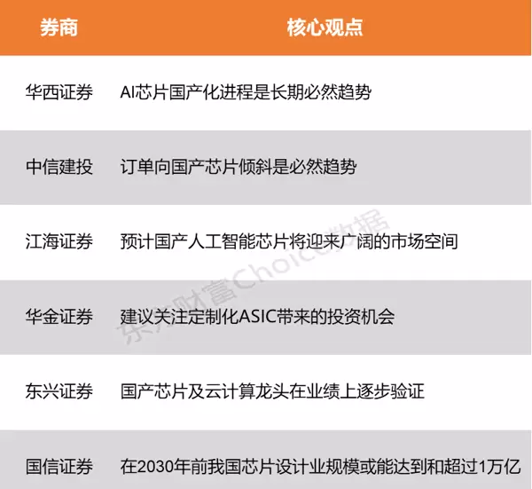 江海证券表示,作为AI算力的核心基础,人工智能芯片的性能直接影响AI模型的发展水平以及未来数字经济的竞争格局。在国家持续加大AI基础设施投入、自主可控战略日益重要的双重驱动下,国产AI芯片预计将打开广阔的市场空间。