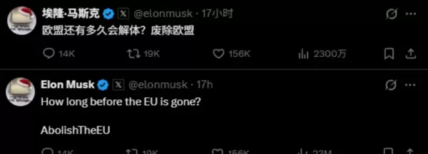 对此,马斯克于12月6日在X平台上回应称:“欧盟不仅对X施加如此荒谬的罚款,还对我个人进行处罚,这实在太过分了!”他进一步表示:“我们有必要对欧盟,以及那些推动此类行动的个人作出回应。”随后,他更发文称“欧盟应该被废除”。