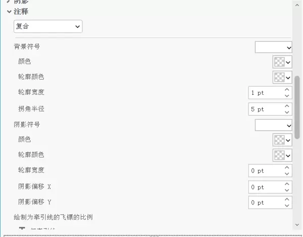 - 在符号类型中选择“注释”,然后切换为“复合注释”模式。按照下方示例图调整相关参数设置。