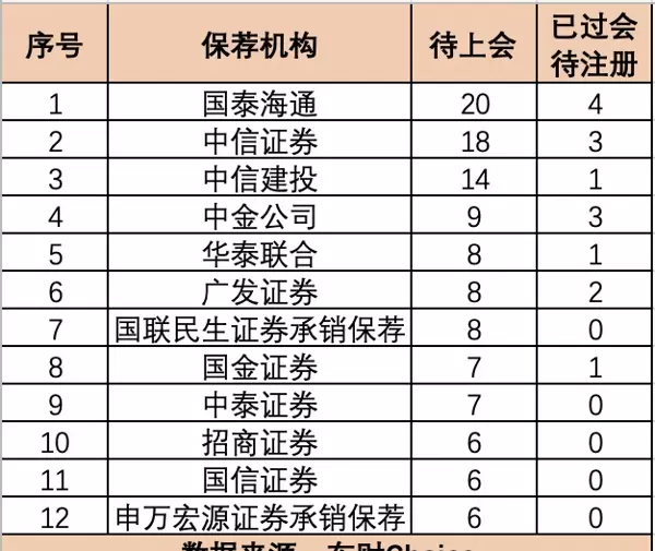 进一步观察项目储备情况,东方财富Choice数据显示,国泰海通以20个待上会项目位居首位;中信证券与中信建投均拥有超过10个待审项目;中金公司有9个项目等待审议;华泰联合、广发证券(000776.SZ)、国联民生(601456.SH)、国金证券及中泰证券(600918.SH)等也具备较强的后续项目储备能力。