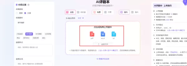 现在,编剧只需将剧本以Word、PDF等格式上传至平台,系统即可自动完成格式检测、规范性评估、内容匹配度分析及综合评级,整个过程不超过10分钟。