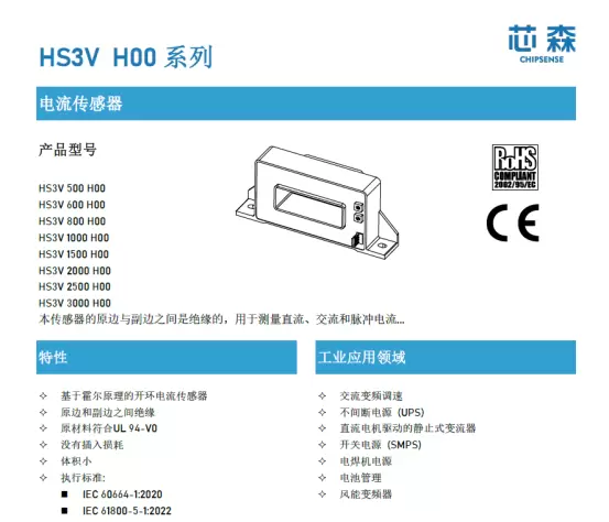 | 开环霍尔 | ±1% | 25kHz | 5kV | ±0.1%/℃ |