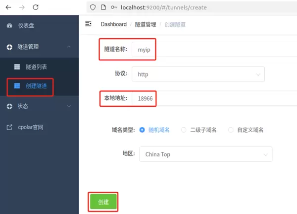 - 隧道名称:可自定义命名,本文示例为 myip,请确保不与已有隧道重名