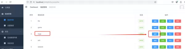 接下来登录 cpolar 的 Web UI 管理界面,进入左侧仪表盘下的“隧道管理” → “隧道列表”,找到目标隧道 MyIP,点击右侧的编辑按钮。