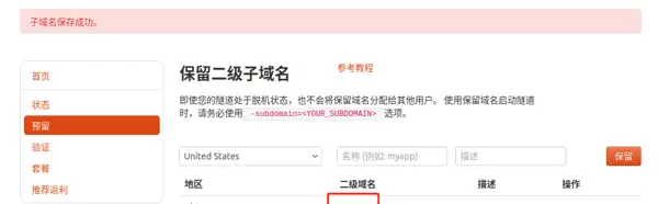 保留成功后,请复制生成的二级子域名地址以备后续使用。