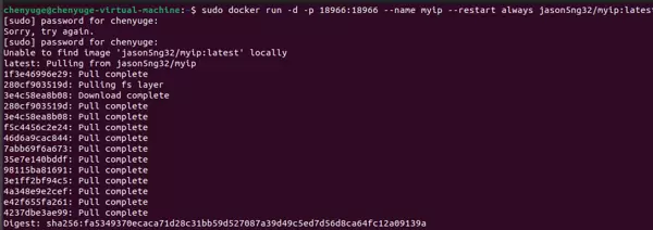 sudo docker run -d -p 18966:18966 --name myip --restart always jason5ng32/myip:latest