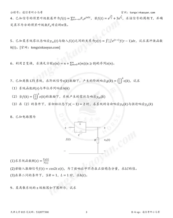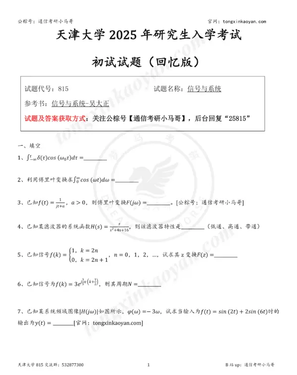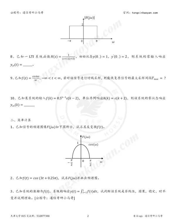 本次分享的是天津大学815信号与系统部分的试题及其深度解析。