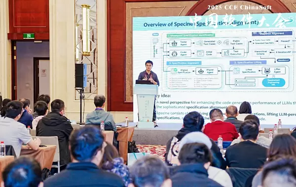 随后,天津大学陈俊洁教授带来了题为“基于需求对齐的大模型代码生成技术”的报告。他强调,需求描述是代码生成的起点,而大语言模型(LLM)对用户需求的语义理解、意图识别和细节把握,直接决定了输出代码的质量。然而,现有模型在面对需求歧义、上下文缺失或语义偏差时,常产生偏离预期的结果。为此,陈教授提出从“需求对齐”角度优化代码生成流程,具体路径包括需求解析、语义映射和对齐反馈机制。通过使模型的理解过程与人类真实意图保持一致,可显著增强生成代码的准确性与实用性,为智能化软件开发提供更坚实的基础。