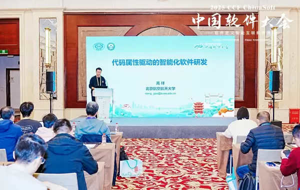 北京航空航天大学高祥副教授以“代码属性驱动的智能化研发”为主题进行了分享。他指出,当前基于大语言模型的智能软件工程方法依赖自然语言交互,存在模糊性强、难以满足程序精确语义要求的问题,导致生成代码在逻辑和语义层面易出现缺陷。针对这一瓶颈,研究团队提出了“代码属性驱动”的新范式,即将程序中的结构化语义属性——如数据类型、接口规约、程序不变式等——系统性地引入模型推理与生成过程,实现高层设计意图与底层实现之间的精准衔接。
