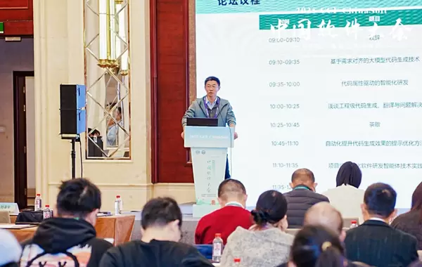 论坛伊始,华为云智能研发首席专家王千祥博士发表开幕致辞。他指出,当前AI辅助软件开发的重点正从单一的大模型能力突破,逐步转向以大模型为核心的智能体系统构建。在此背景下,软件工程领域应主动迎接变革,推动研发智能体的技术创新与实践落地,尤其要在提升代码生成的可控性、可靠性方面做出实质性贡献。