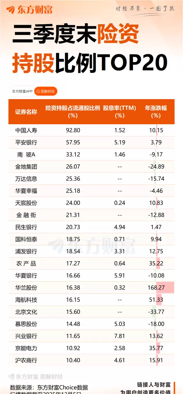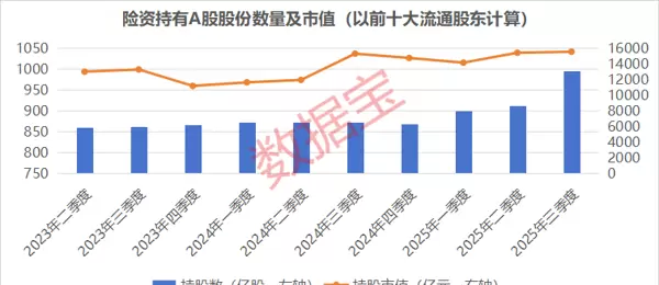 数据显示,截至2025年三季度末,险资通过前十大流通股东渠道持有A股数量接近996亿股,持股市值达1.56万亿元,两项指标均创下近十个季度以来的新高,相较2023年二季度末增长逾15%。
